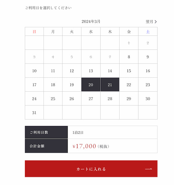 車詳細ページからレンタルする日程をカレンダーで選択してください。2日以上のレンタルを希望する場合は、「レンタル期間を延長する」からご希望の延長日数を選択してください。